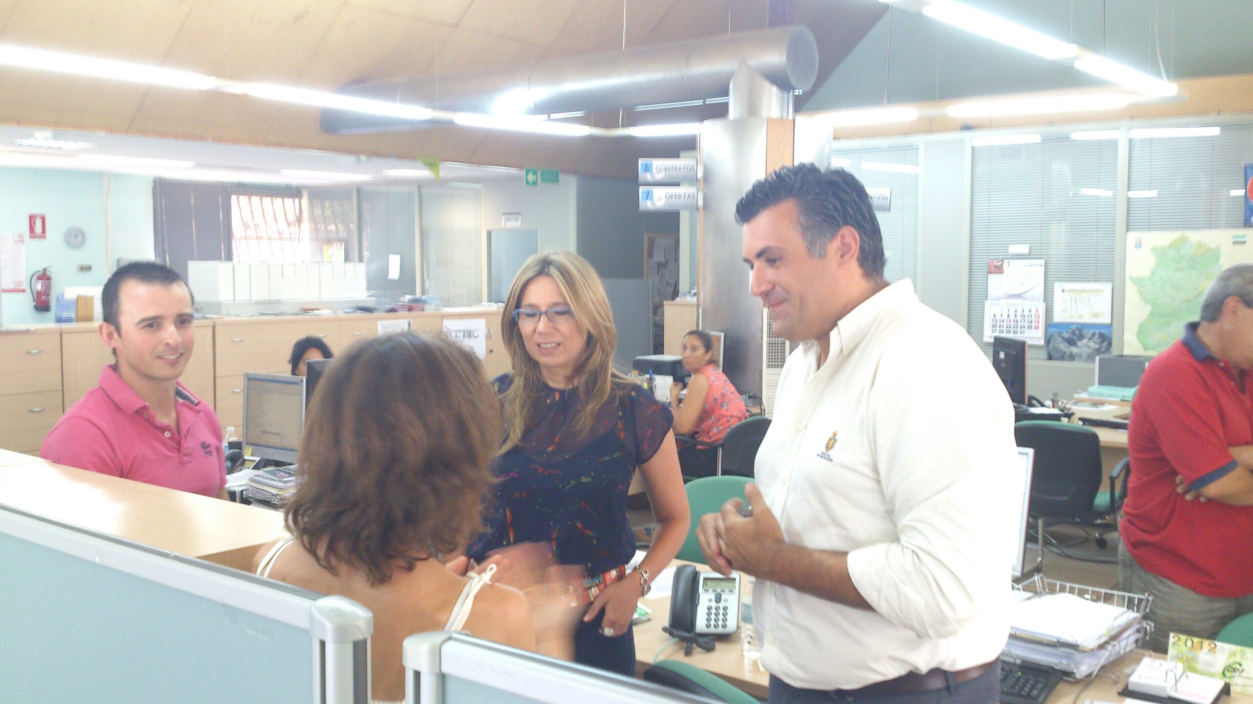 La vicepresidenta y consejera de Empleo, Empresa e Innovación, Cristina Teniente, junto al alcalde de Coria, han visitado esta mañana las instalaciones del Sexpe y saludado a sus empleados