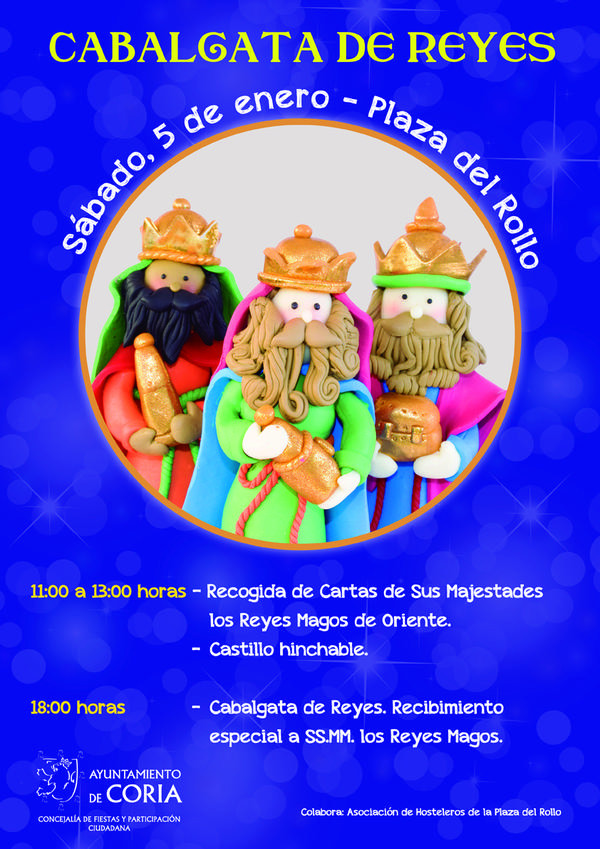 El Ayuntamiento de Coria informa de los actos programados para la Cabalgata de Reyes el próximo 5 de enero de 2013.