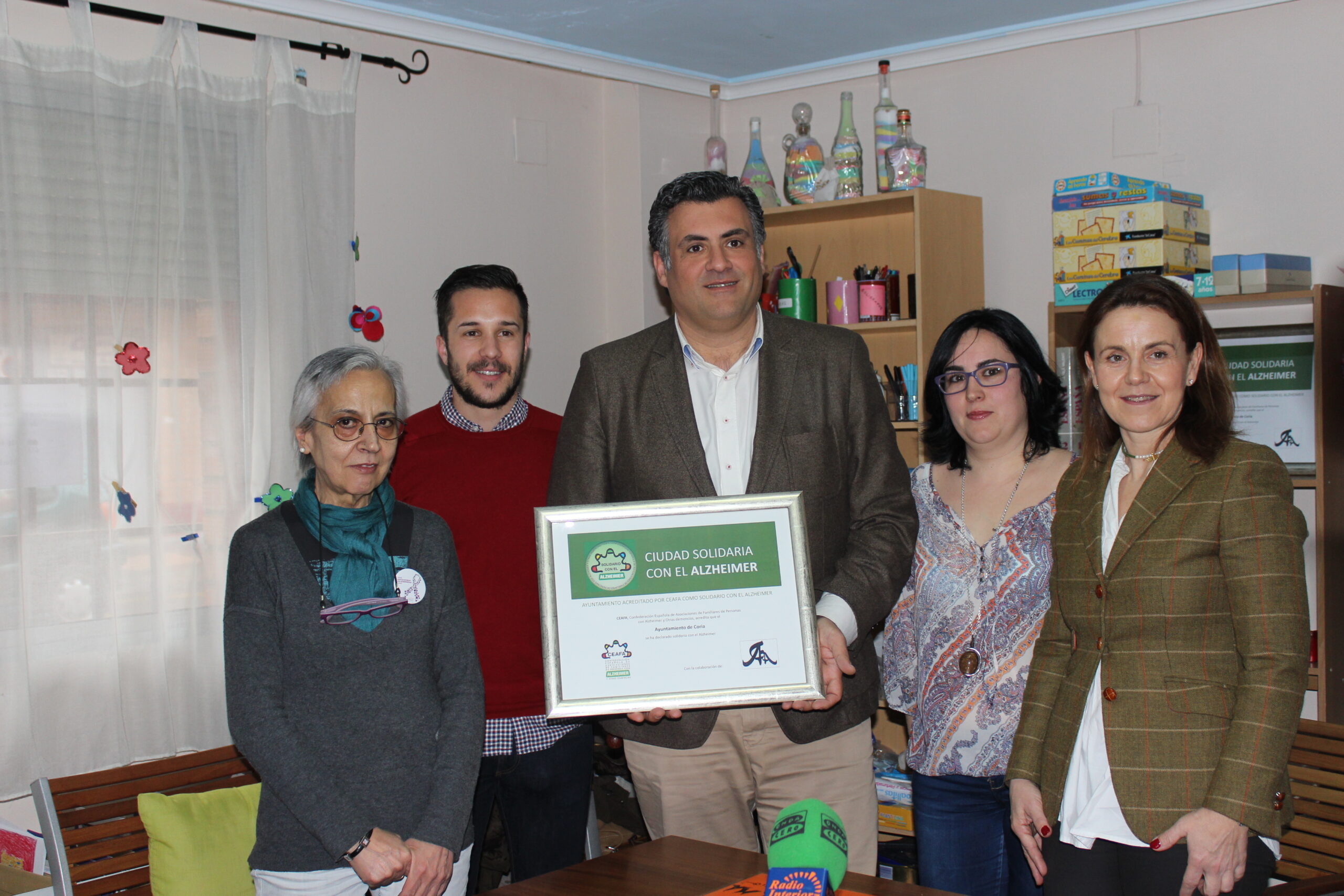 La Asociación de Familiares y Enfermos de Alzhéimer de Coria, con la acreditación de la Federación Española de Asociaciones de Familiares de Personas con Alzheimer (Feafa), ha entregado al alcalde, José Manuel García Ballestero, un diploma que acredita a Coria como Ciudad solidaria con el alzheimer.