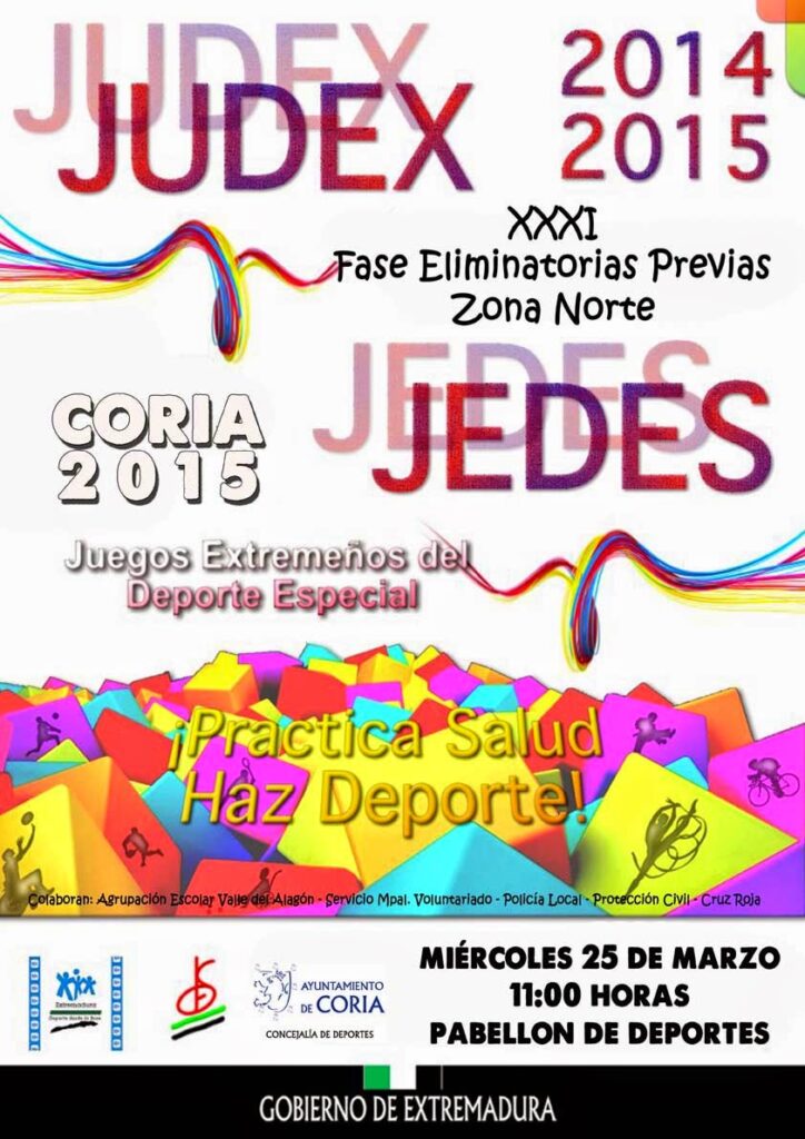 La Concejalía de Deportes del Ayuntamiento de Coria, teniendo en cuenta la filosofía del deporte base y deportes para todos, quiere continuar colaborando y apoyando actividades sobre deporte adaptado, en virtud de lo cual este año acoge la organización, el próximo MIÉRCOLES 25 DE MARZO, la FASE DE ELIMINATORIAS PREVIAS ZONA NORTE, correspondiente a los XXXI Juegos Extremeños del Deporte Especial (JEDES).