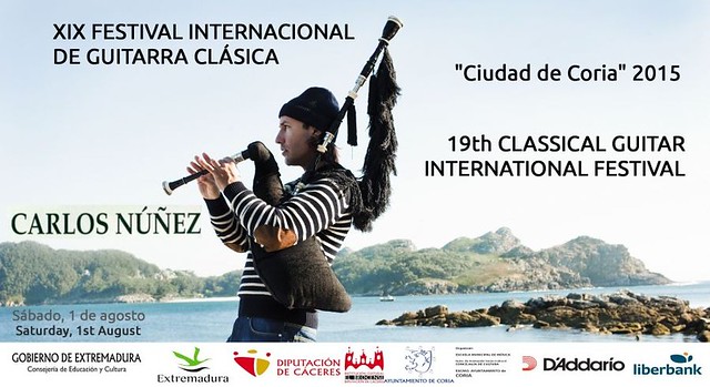 Con motivo del XIX Festival Internacional de Guitarra Clásica «Ciudad de Coria» 2015, Carlos Núñez inaugurará el festival con un concierto en la plaza de la Catedral de Coria, el próximo sábado 1 de agosto a las 22h00.