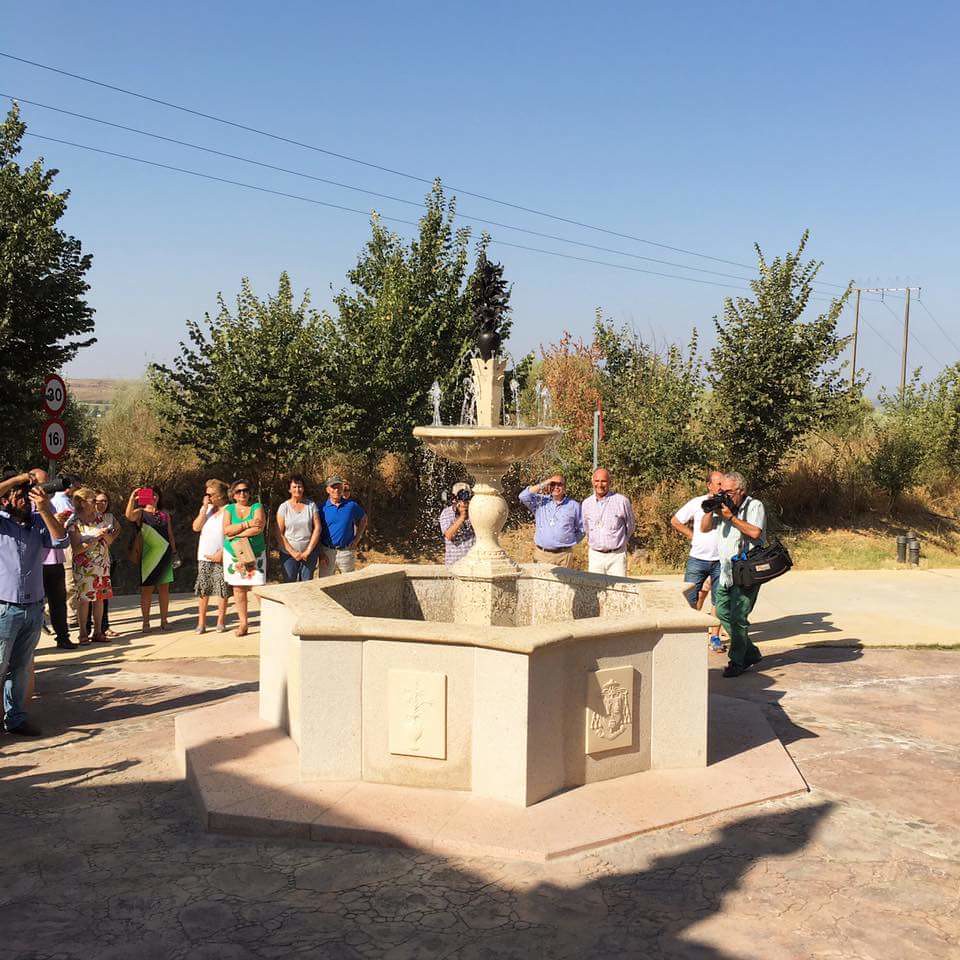 Como colofón final, y ahora portada nuestra Morenita por sus fieles Hijos, la procesión se dirigió hasta la Fuente del Peregrino– en granito amarillo que incorpora una pila o abrevadero antiguo y remata con un bajorrelieve de la Virgen en piedra arenisca-, que fue igualmente bendecida por nuestro Obispo, ante la presencia de la familia donante, Moreno Recio, que visiblemente emocionados, compartieron este acto con todos sus familiares y resto de fieles.