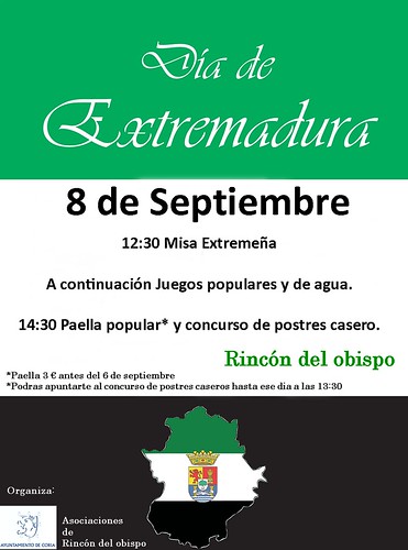 El Ayuntamiento de Coria y en particular el Alcalde Pedáneo de Rincón del Obispo, Álvaro Fernández Blanco, invitan a todos los vecinos de la pedanía y visitantes a pasar un día divertido y entretenido y así conmemorar el Día de la comunidad.