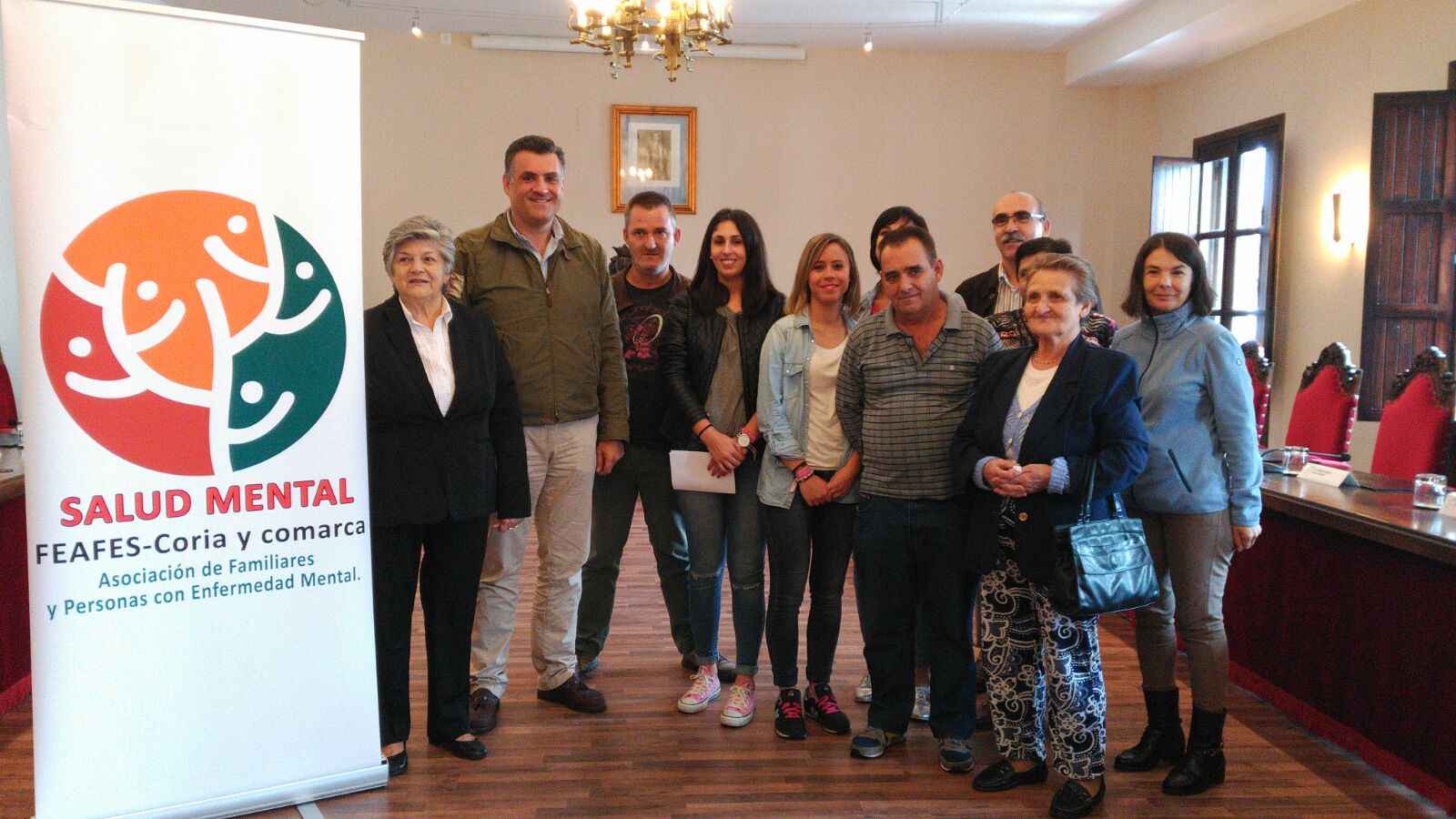 FEAFES Coria y Comarca conmemoraron en el día de ayer el Día Mundial de la Salud Mental en un acto que se celebró en el Ayuntamiento de Coria con el Alcalde, José Manuel García Ballestero, junto a la Concejal de Asuntos Sociales, Igualdad y Mujer, Mari Carmen Yerpes, además de varios concejales del Equipo de Gobierno. En el acto también estuvo presente la presidenta de la Asociación, María Redondo Vaquero y miembros del colectivo.