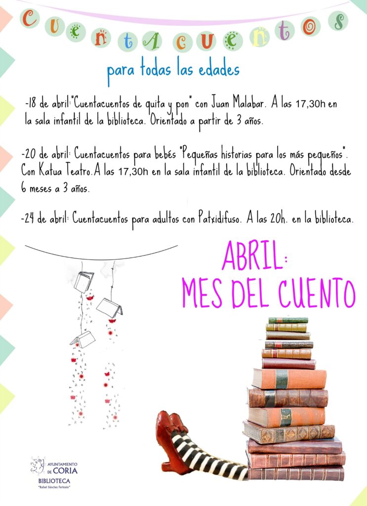 Abril es un mes muy activo en la Biblioteca Municipal de Coria, ya que celebramos el DÍA INTERNACIONAL DEL LIBRO. Por ello, desde la biblioteca han organizado varias actividades y, entre ellas, se ha dado prioridad al cuento, pero no como género literario, sino al cuento oral.
