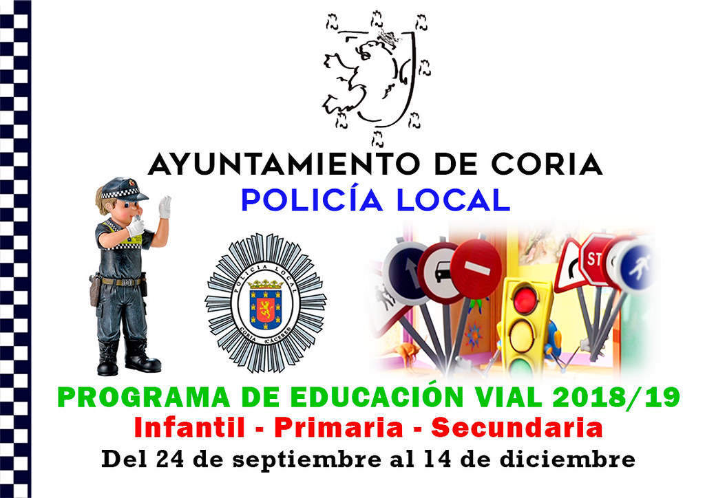 La Policía Local de Coria pone en marcha, un año más, el Programa de Educación Vial en los Centros Escolares de Coria, Rincón del Obispo y Puebla de Argeme