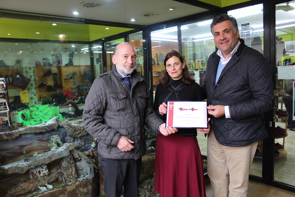 El premio ha consistido en un diploma que valora el trabajo destacado por la propietaria del establecimiento, la originalidad y la innovación en el montaje de un portal de Belén de grandes dimensiones en sus dos escaparates.