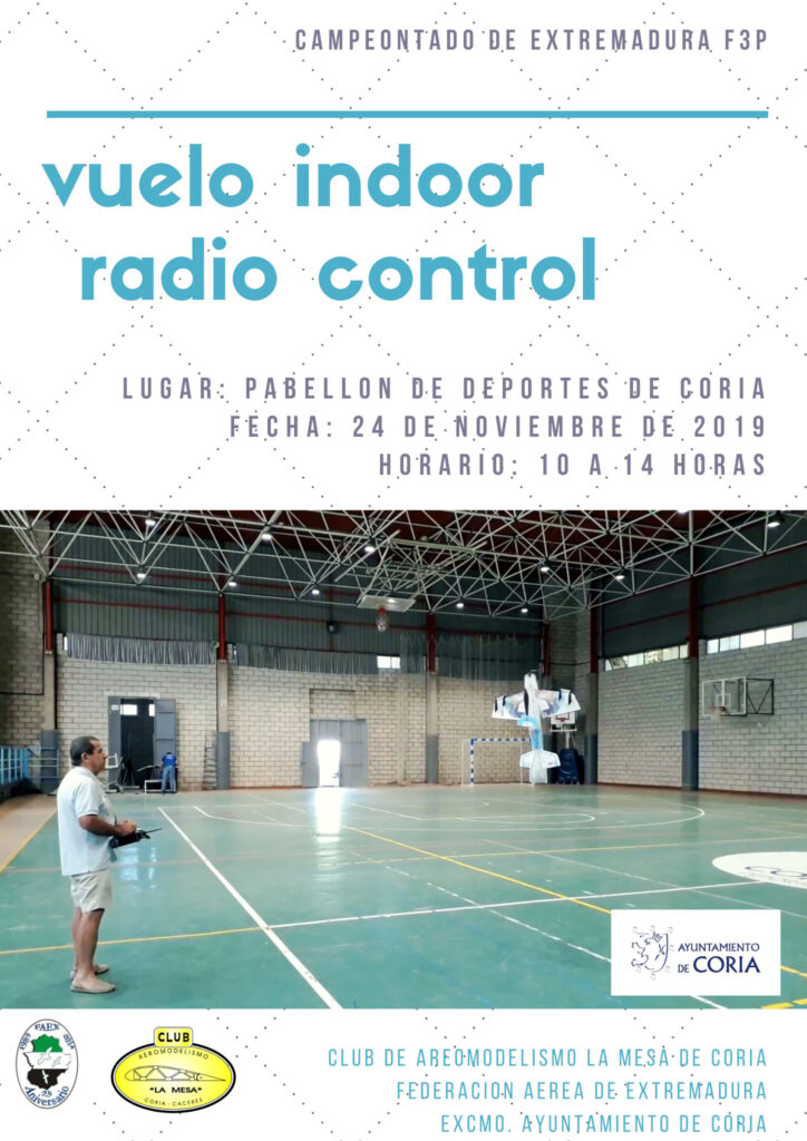 La Ciudad de Coria acogerá el Campeonato de Extremadura de Vuelo Indoor F3P 2019, organizado por el Club de Aeromodelismo «La Mesa» con la colaboración de la Federación Aérea de Extremadura (FAEX) y el Ayuntamiento de Coria.