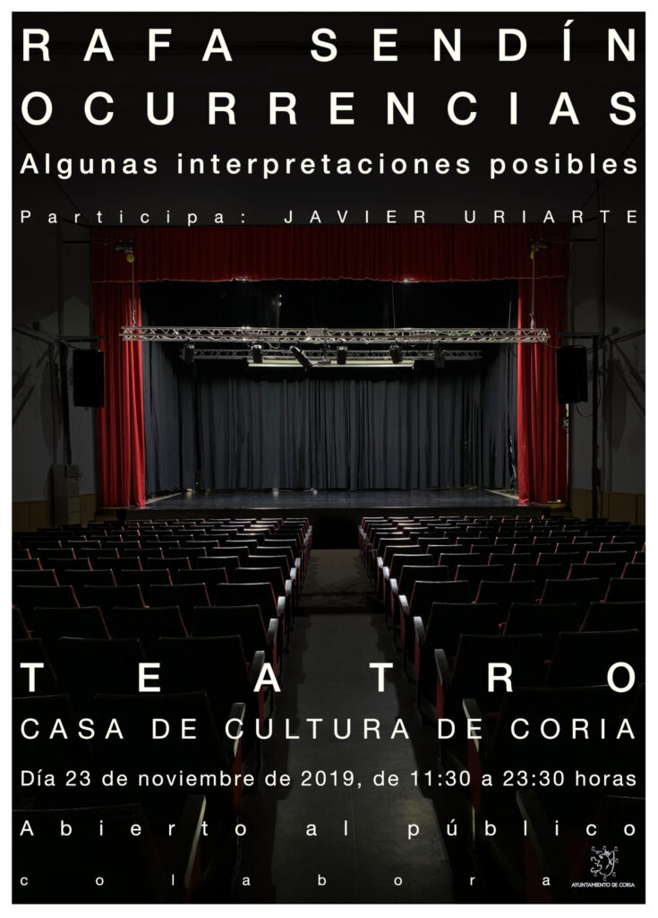 Se programarán 15 acciones (ocurrencias), todas ellas se ejecutarán en directo, cara al público, aprovechando el horario de apertura del teatro de la Casa de Cultura de Coria, de 11:30 a 23:00h del día 23 de diciembre.