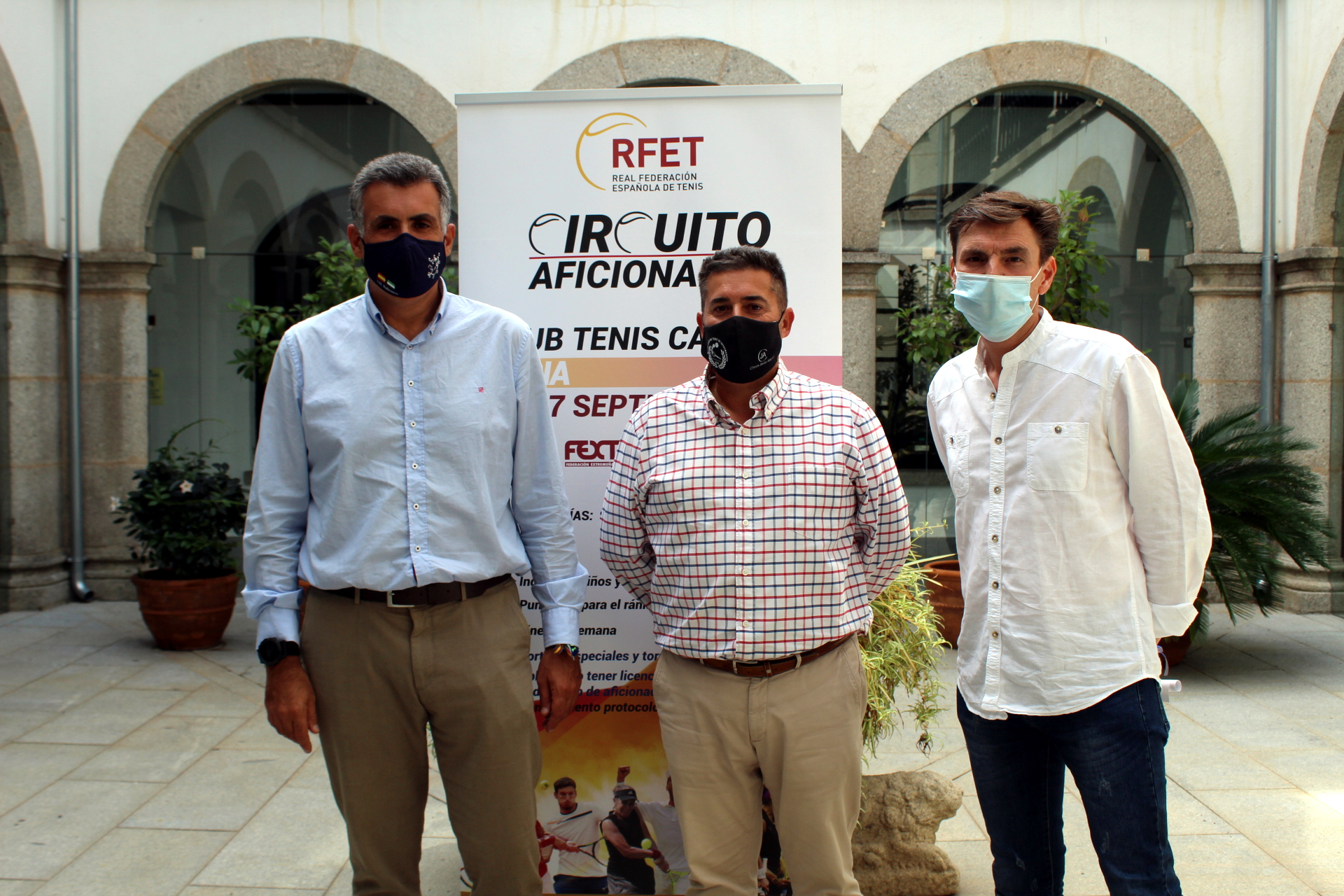 El Alcalde de Coria, José Manuel García Ballestero, acompañado del Concejal Delegado de Deportes, Juan Manuel Gutiérrez Rodríguez, junto al Presidente del Club de Tenis Cauria, Roberto Jiménez Navarro, han presentado esta mañana esta prueba deportiva diseñada por la RFET, a través de un circuito de torneos de tenis dirigidos a jugadores aficionados de todas las edades, sexos y niveles, tanto de iniciación como intermedio, a disputarse a nivel nacional dentro de las distintas CC.AA. de España, tras las excelentes acogidas que tuvo el mismo en las ediciones pasadas en todo el país.