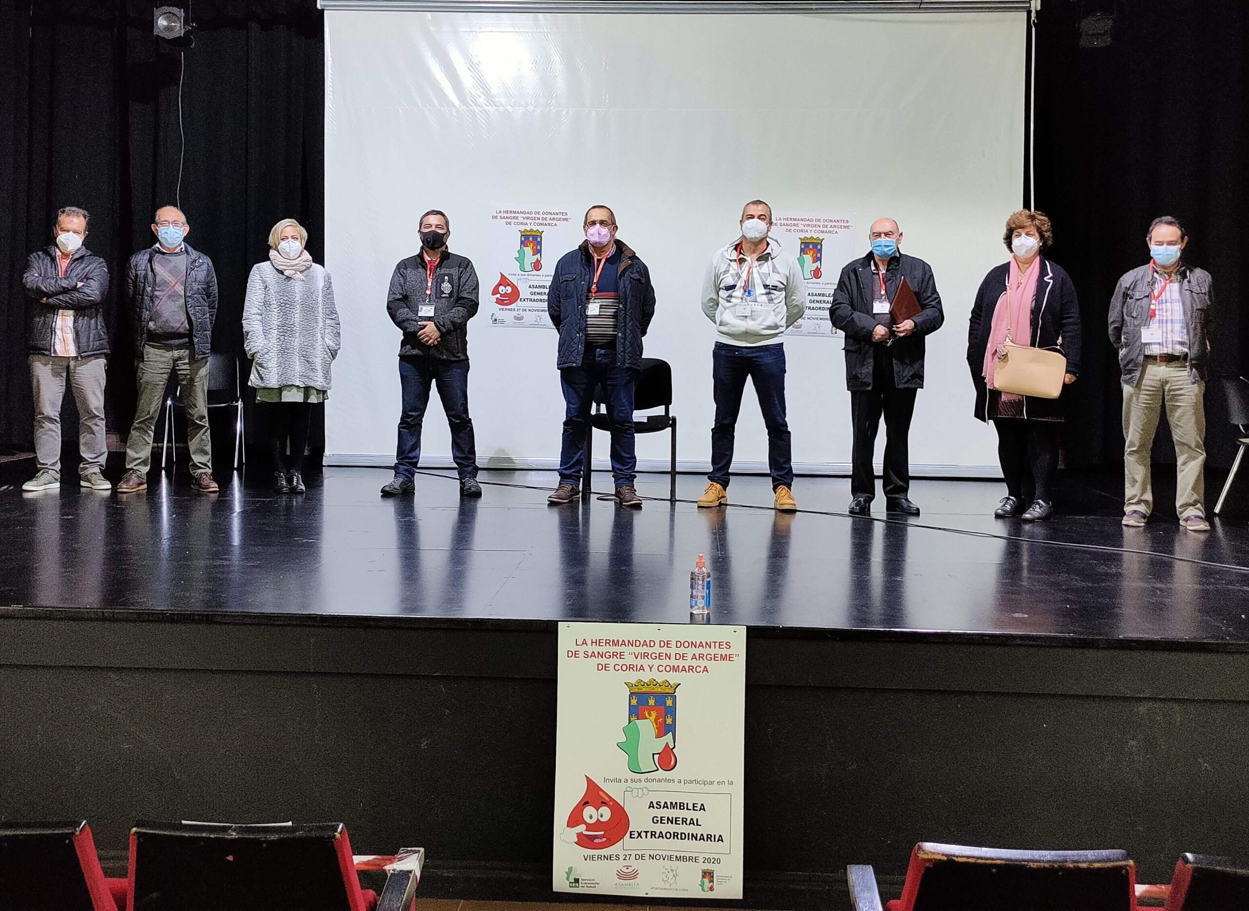 Dándose cumplimiento al protocolo de seguridad establecido por las autoridades sanitarias y civiles para la lucha contra la pandemia COVID-19; a las 20:30 horas del pasado día 27 de Noviembre de 2020, se celebró en el Salón de Actos de la Casa de Cultura de Coria (con aforo para 80 personas) una Asamblea General Extraordinaria de la Hermandad de Donantes de Sangre de Coria y Comarca, con un punto único en el orden del día: «presentación y elección de la lista de candidatos para nombrar nueva Junta Rectora», por renuncia expresa al cargo y dimisión de la presidenta que fue electa en la Asamblea General Ordinaria del día 9 de febrero de 2019.