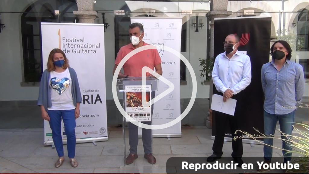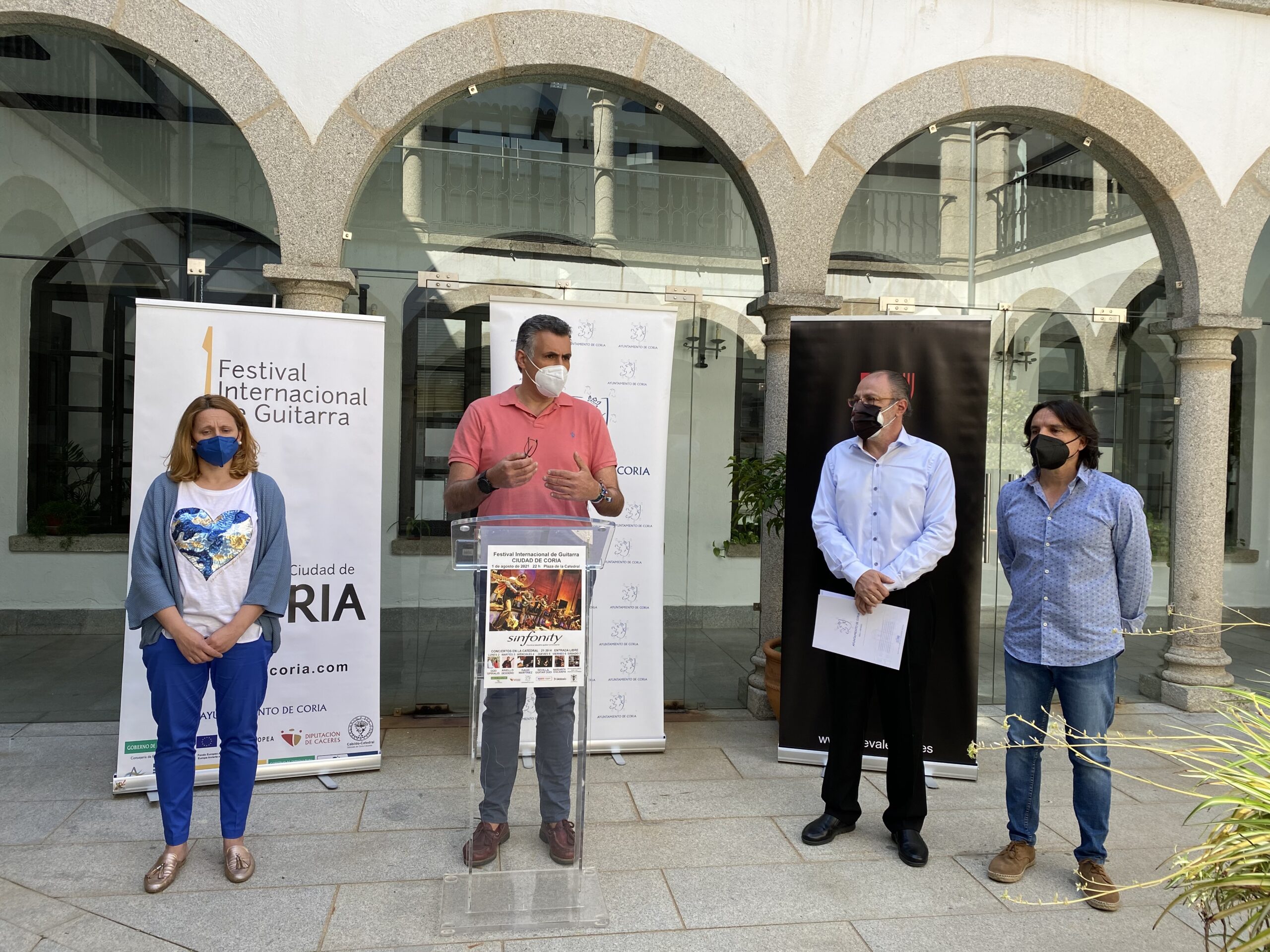 El Alcalde de Coria, José Manuel García Ballestero, junto al Director del Festival de Guitarra, Hugo Heller, ha presentado esta mañana en el patio de cristal del Ayuntamiento, la XXIV edición del Festival Internacional de Guitarra «Ciudad de Coria» que se celebrará del 1 al 8 de agosto del presente.