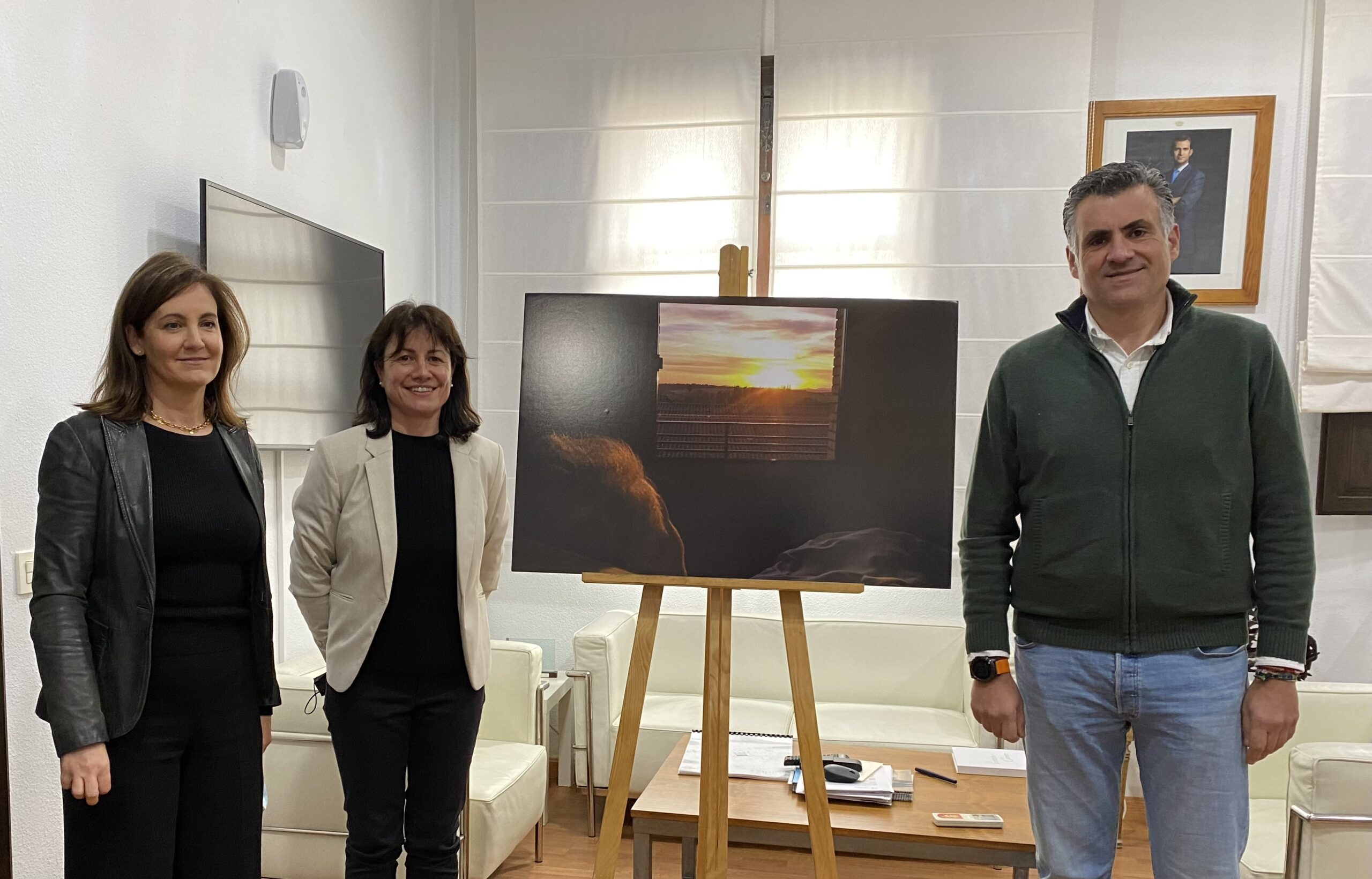 El Alcalde de Coria, José Manuel García Ballestero, junto a la Teniente de Alcalde, Almudena Domingo Pirrongelli, ha recibido esta mañana en el despacho de alcaldía, a la periodista Nieves Agut, quien ha presentado su proyecto “La Ventana de Carmen”.