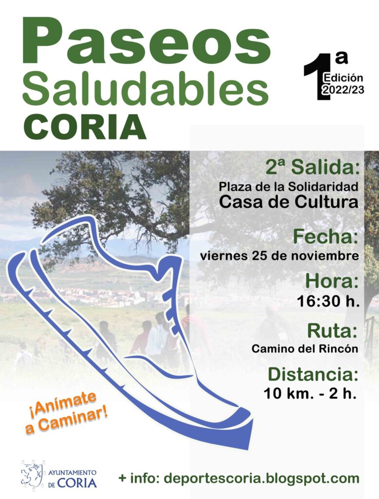 El Ayuntamiento de Coria, a través de la concejalía de deportes, organiza la segunda salida del programa “Paseos Saludables”.