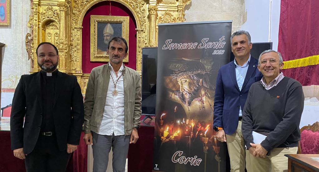 En el acto de presentación ha asistido el Alcalde de Coria, José Manuel García Ballestero, junto con el Presidente de la Unión de Cofradías Penitenciales, Modesto Martiño Martínez y el Canónigo de la Catedral, Roberto Chaves Campon.