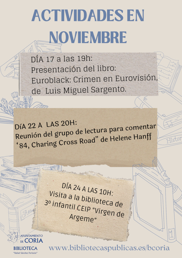 La biblioteca municipal “Rafael Sánchez Ferlosio”, organiza varias actividades para disfrutarlas este mes de noviembre.