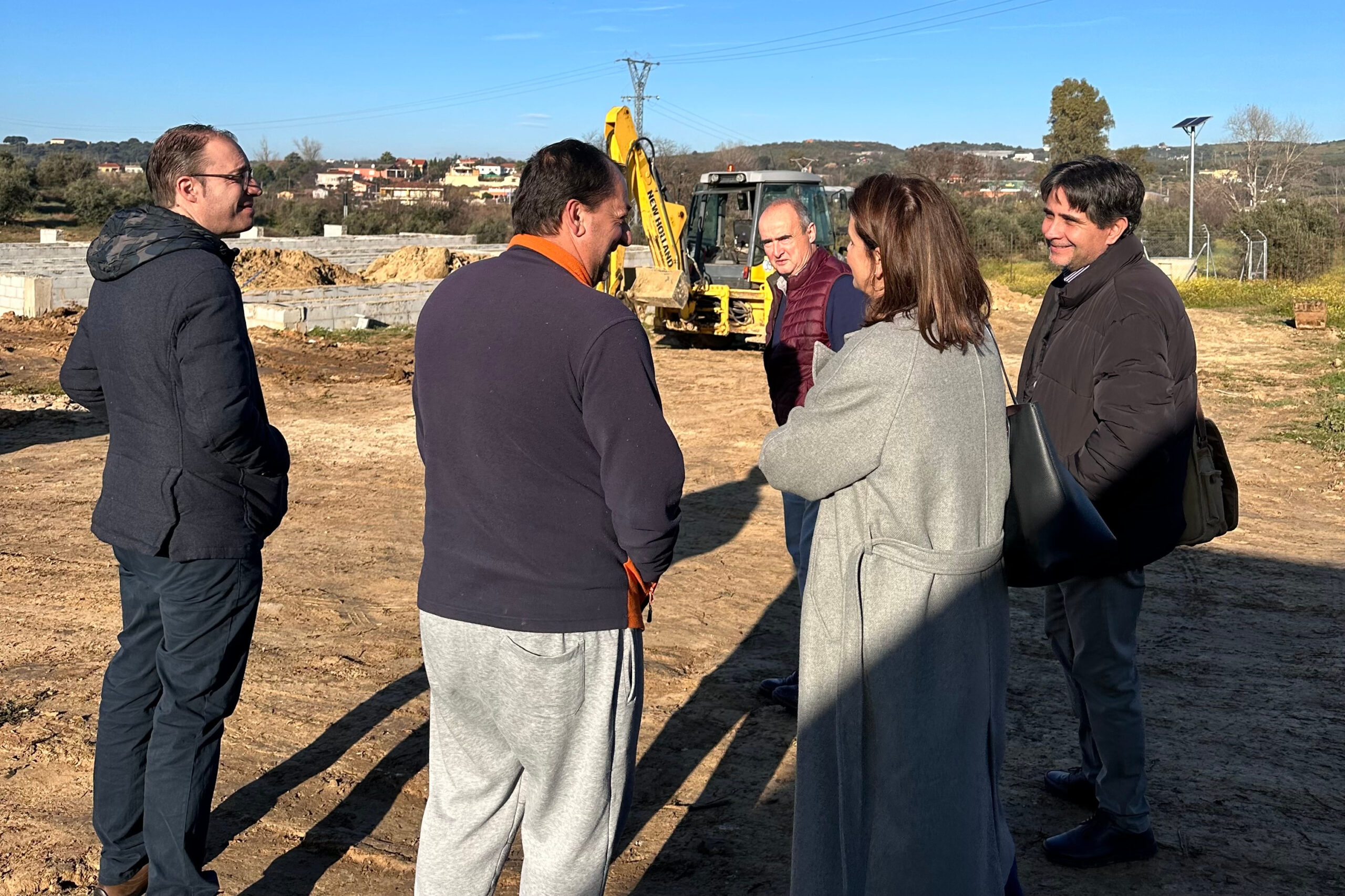 La Alcaldesa de Coria, Almudena Domingo Pirrongelli, junto a los concejales Pablo Enciso y Juan José Alcón, el arquitecto municipal, Javier Rama y el gerente de la empresa adjudicataria, ha visitado recientemente las obras de ampliación del cementerio municipal.