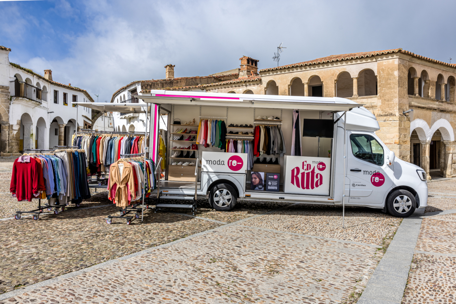 Moda re-, la cooperativa de iniciativa social sin ánimo de lucro impulsada por Cáritas pone en marcha un innovador proyecto de sensibilización y concienciación sobre el consumo, la reutilización y el reciclaje textil, iniciando en Extremadura, concretamente en la provincia de Cáceres. De la mano de REMUDARTE (empresa de economía social liderada por Cáritas Diocesana de Coria-Cáceres, y socia de Moda re-), la iniciativa, bajo el eslogan “Moda re- en ruta, súbete a la moda sostenible”, pretende facilitar la accesibilidad de toda la ciudadanía, inicialmente a pequeñas poblaciones de alrededor de 5.000 habitantes o menos, a un nuevo tipo de consumo ético y responsable, así como a una entrega social digna de la ropa gracias a un original espacio de moda sostenible sobre ruedas.