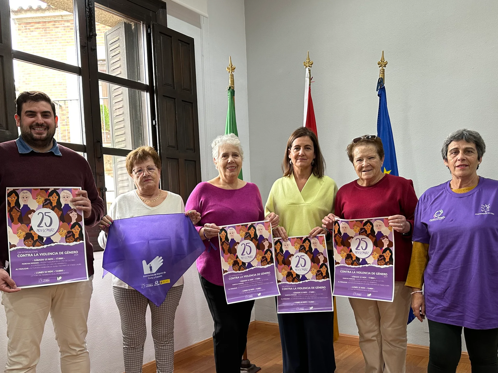 La Presidenta de la Asociación de Mujeres de Coria y Comarca, Amparo Sánchez, ha anunciado que, el sábado 23, tendrá lugar la Marcha Morada, con salida a las 17:00 h., desde la casa de cultura y llegada a la misma ubicación. A continuación, se procederá a la lectura del manifiesto con motivo del 25N. La marcha recorrerá las diferentes avenidas, calles del casco histórico y plazas de la ciudad. Momentos previos se distribuirán camisetas, pulseras y pañuelos a los asistentes al acto.