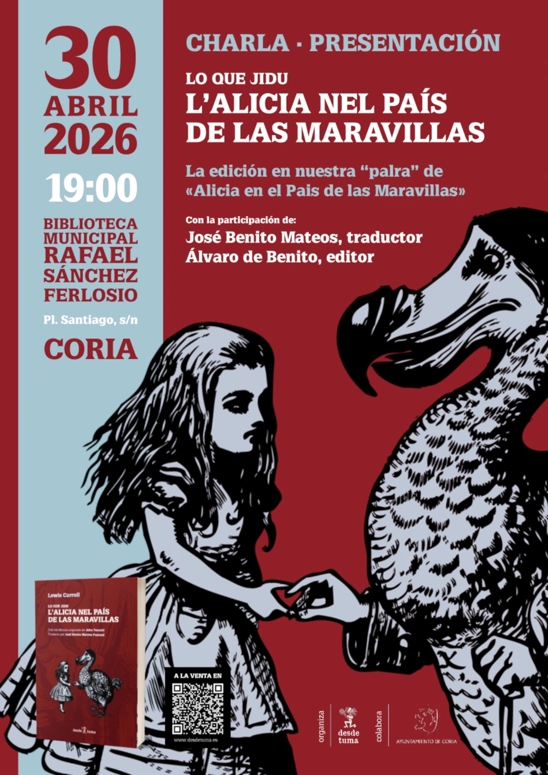 La Biblioteca de Coria os invita a un evento mu especial: la presentación de Alicia en el País de las Maravillas… ¡pero escrita en castúo!