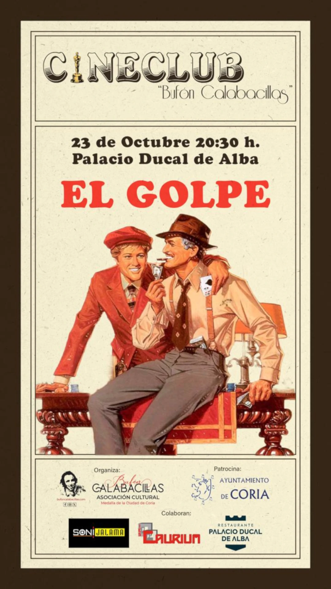 El día 23 de octubre, la Asociación Bufón Calabacillas continua su cine club con la proyección de una película «El Golpe», será a las 22h30 en el Palacio Ducal de Alba.