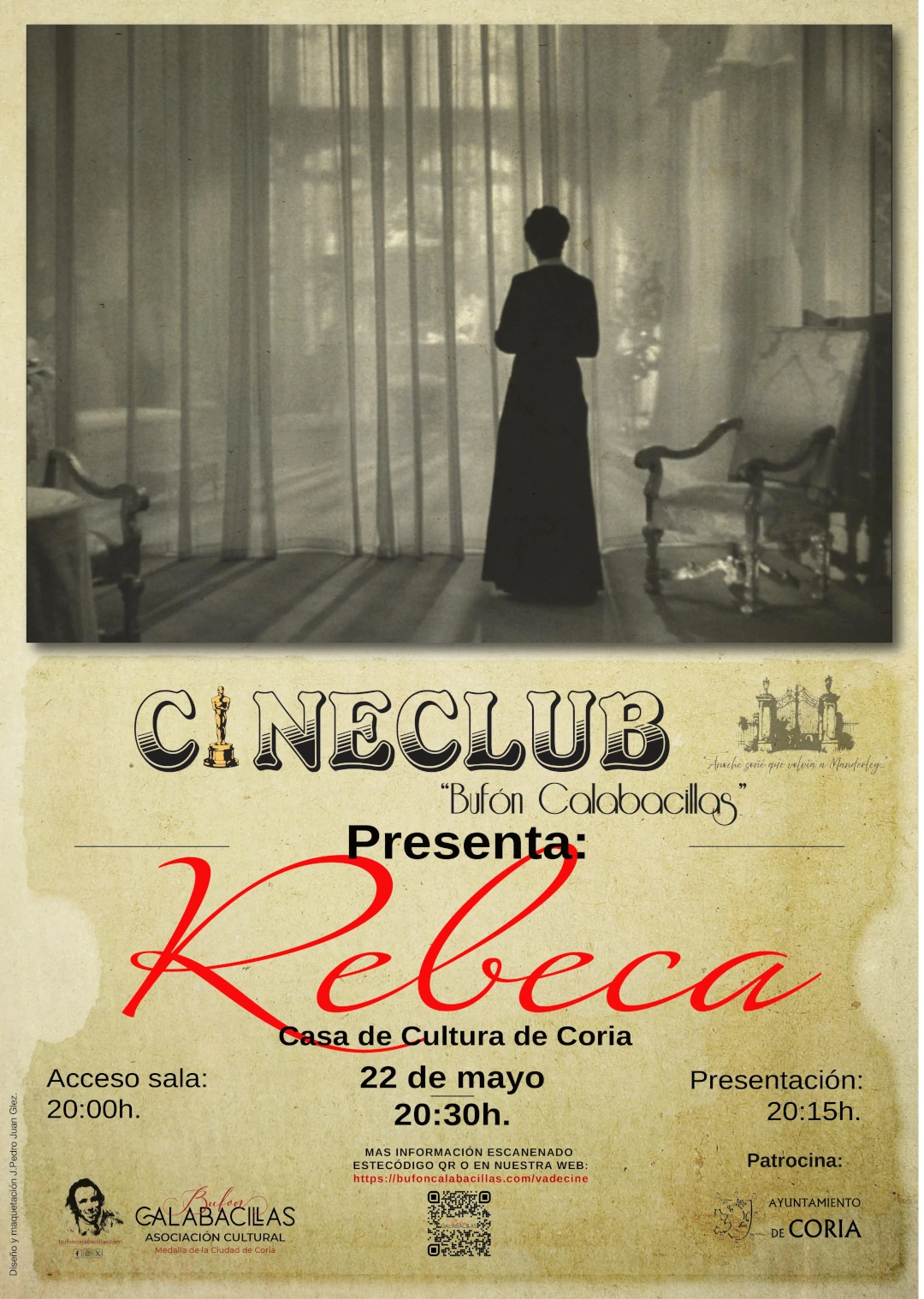 El día 22 de mayo, la Asociación Bufón Calabacillas continua su cine club con la proyección de una película clásica «Rebeca», será a las 20h30 en la Casa de Cultura de Coria.