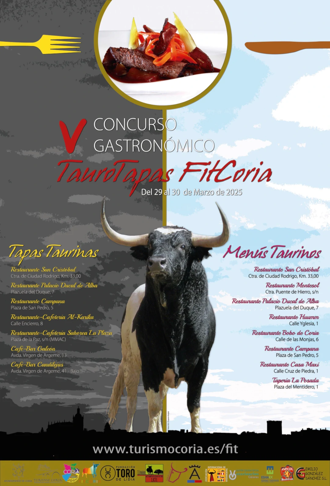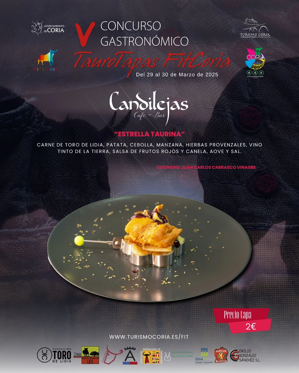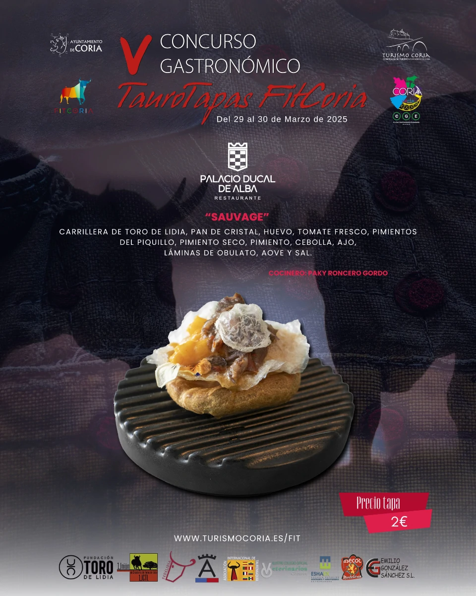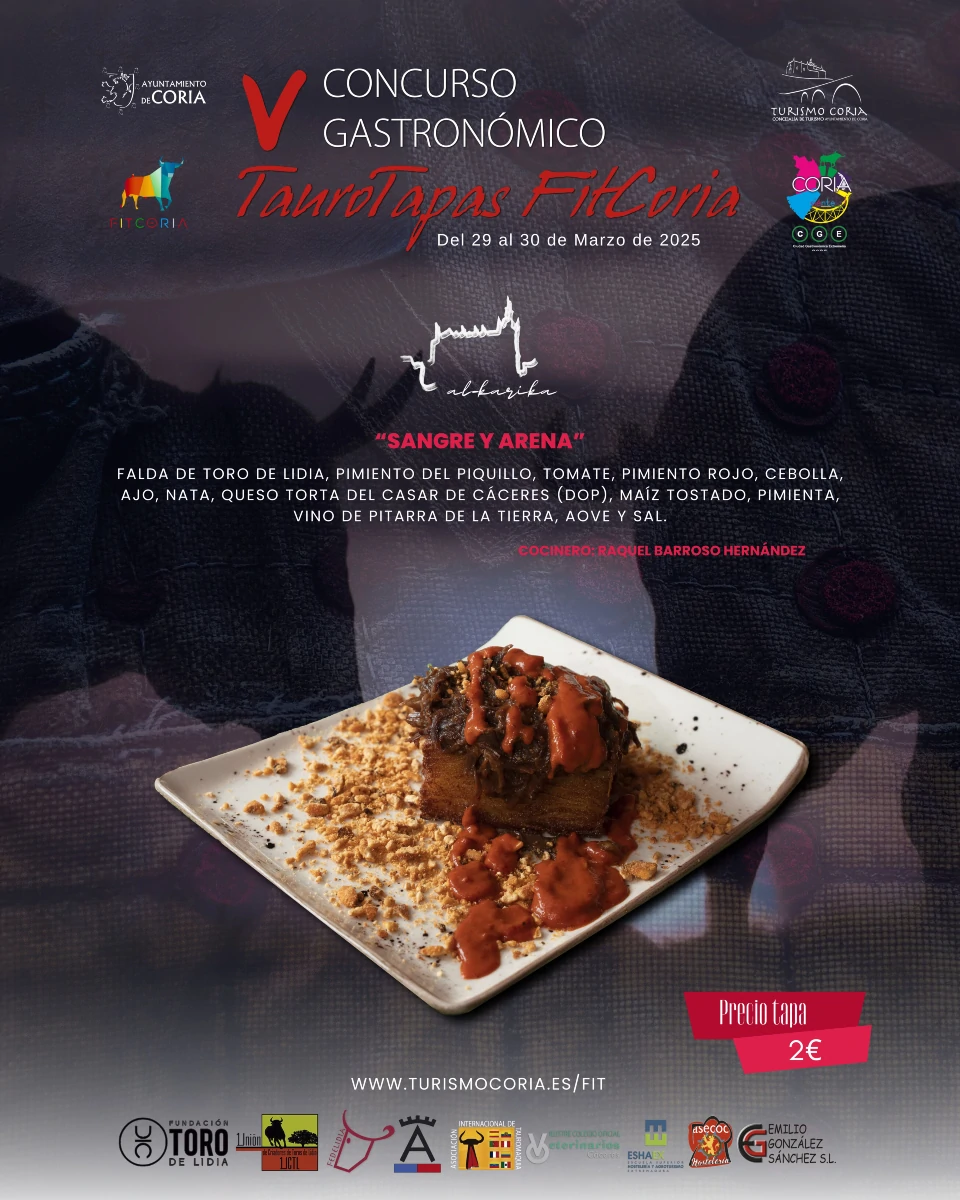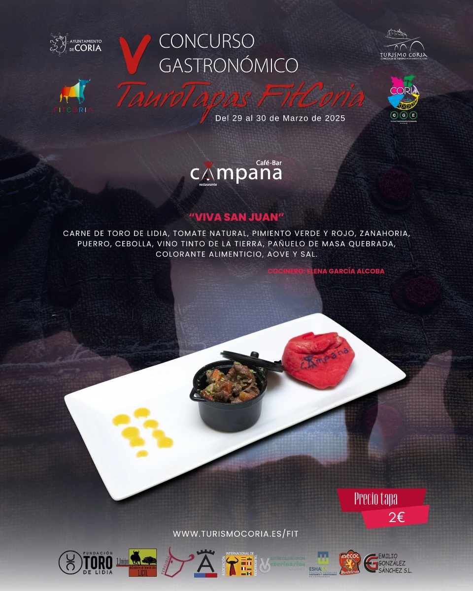 Derivado de la imagen taurina de la Ciudad de Coria, al estar vinculada ésta desde tiempos inmemoriales con el toro de lidia a través de sus ancestrales y tradicionales Fiestas de San Juan, se ha convocado el Concurso Gastronómico “TauroTapas FitCoria” con el objetivo de fomentar, conservar, sostener y promocionar la defensa del toro y de la cultura taurina coincidiendo con la celebración de la Feria Internacional del Toro de la Ciudad de Coria (FITCORIA).