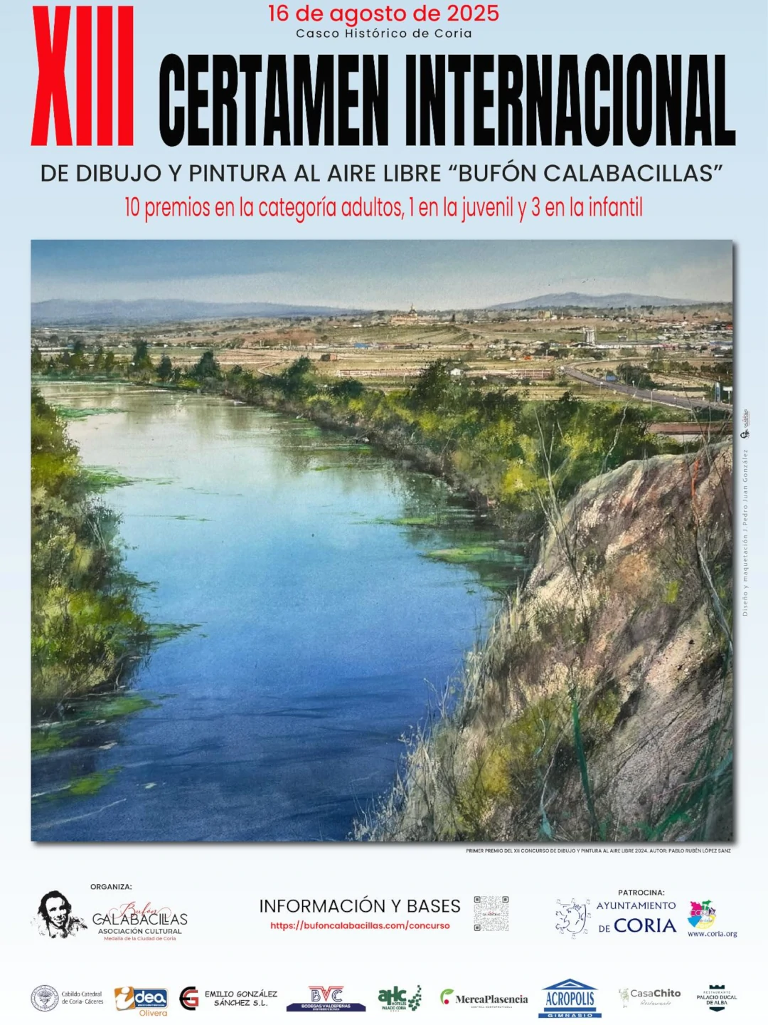 La Asociación “Bufón Calabacillas-Coria” convoca el XIII Certamen Internacional de Dibujo y Pintura al Aire Libre, fijándola el día 16 de agosto de 2025.