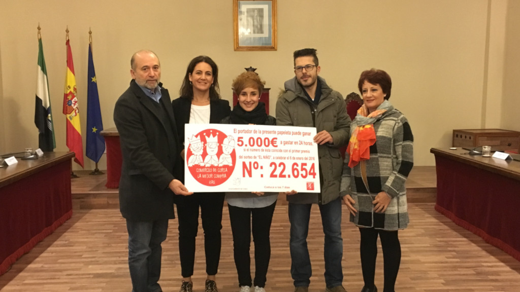 La ganadora canjeará este cheque por regalos en los comercios de Coria inscritos en la Campaña de Navidad «Coria, Tu Mejor Compra», en un plazo de 24 horas.