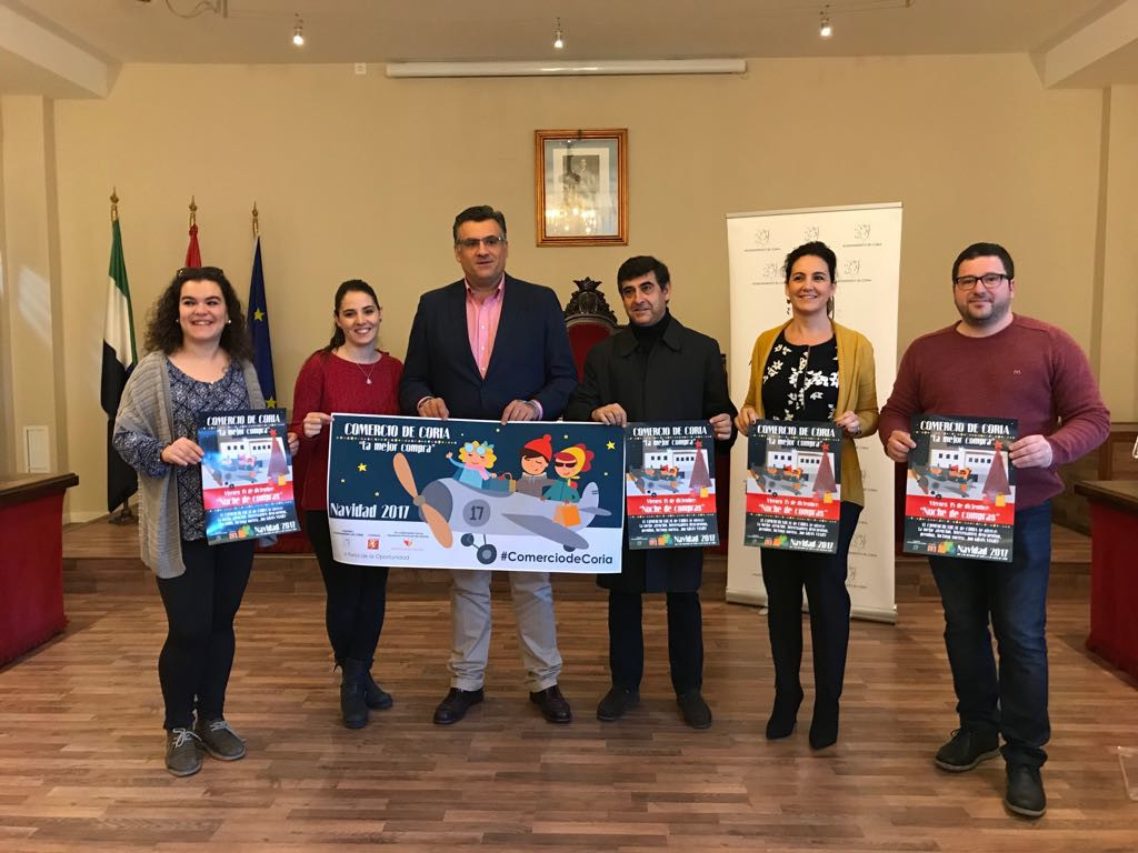 El Alcalde de Coria, José Manuel García Ballestero, junto a la Concejal de Desarrollo Local y Turismo, Almudena Domingo Pirrongelli, han presentado esta mañana en rueda de prensa, la Campaña de Navidad 2017, » Comercio de Coria, La Mejor Compra».