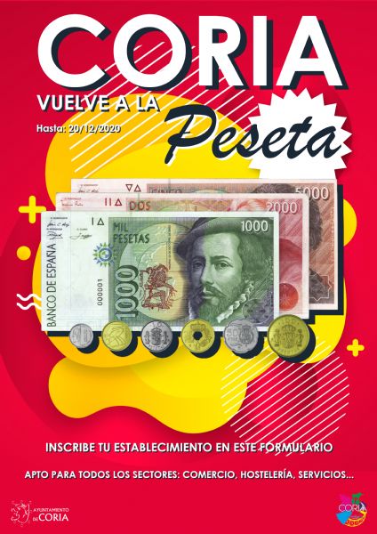 Desde el consistorio, animan a los establecimientos de la ciudad a participar en esta iniciativa que puede servir para aumentar las compras en la localidad y anima a todas esas personas que aún conservan las pesetas en casa a que se las gasten en Coria y se ponga en circulación este dinero.