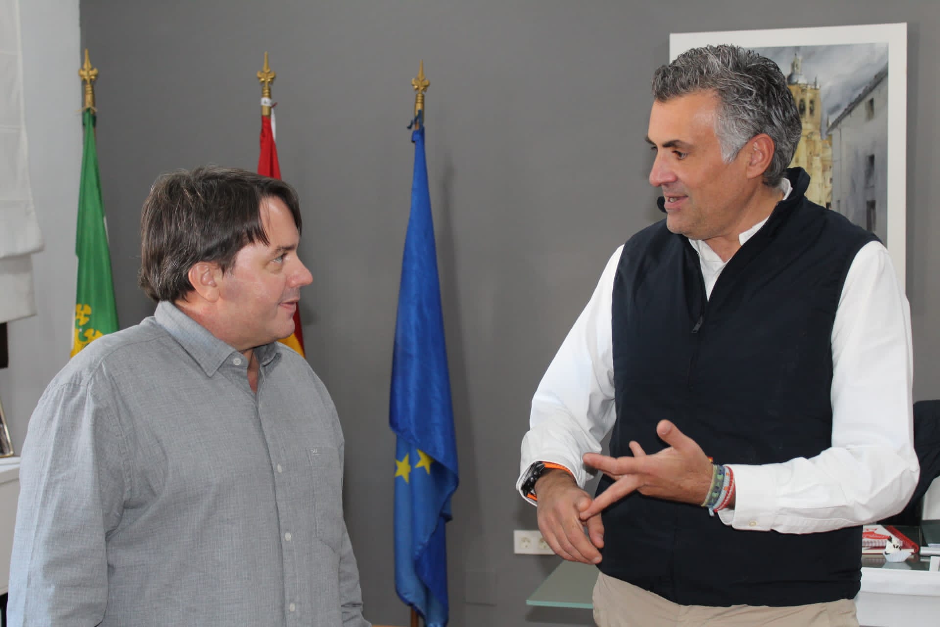 El Alcalde de Coria, José Manuel García Ballestero, ha recibido en el Ayuntamiento a Ramón Domínguez, gerente de la empresa de nuestra localidad “Cambio Energético S.L.”, tras recibir el premio PYME del Año.